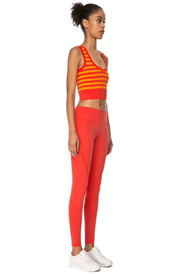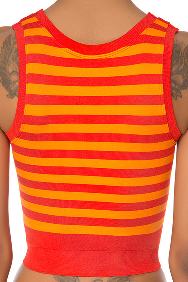 *Yuvarlak yaka, çift katlı, çizgi desenli, kolsuz sporcu croptop.