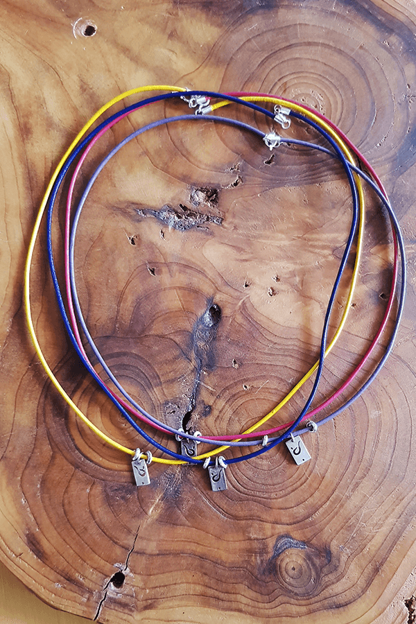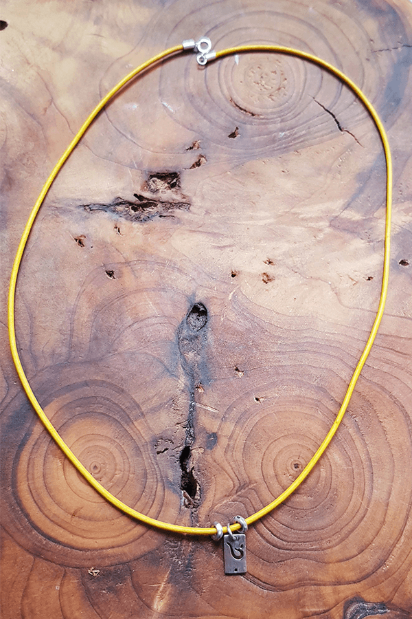 925 ayar gümüş halasana pozu figürü ile oluşturulmuş kolyenin askısı renklendirilmiş gerçek deridir. Deri rengi çakra renklerini desteklemek üzere seçilmiştir. 42 cm uzunluğundadır. Kolyenin kopçası 925 ayar gümüştür.