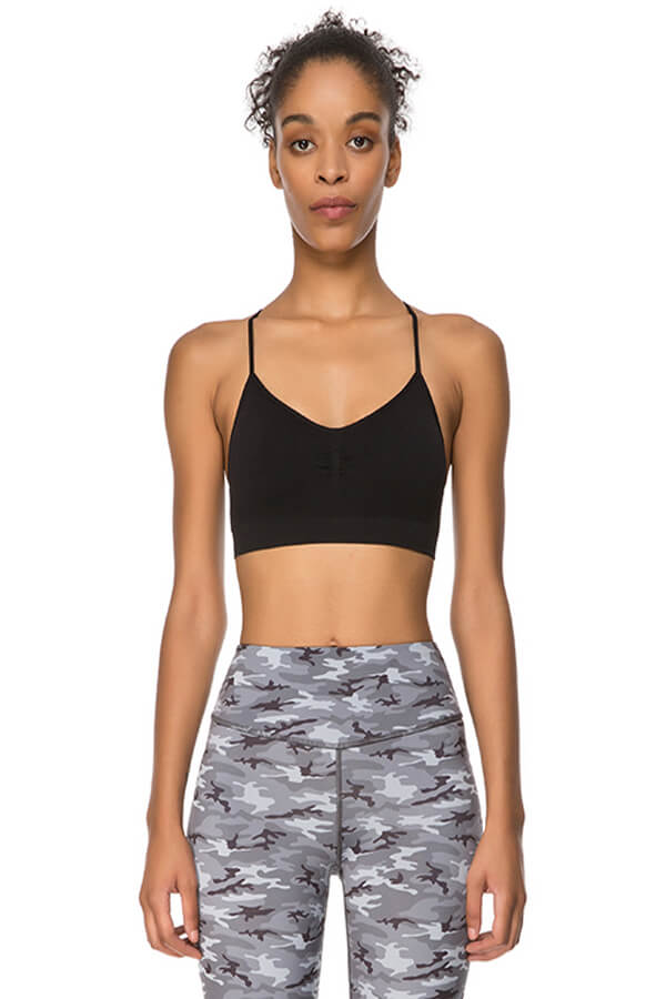 *V yaka, gloplu, düz renk, sırt yapısı çok askılı sporcu bustiyeri.